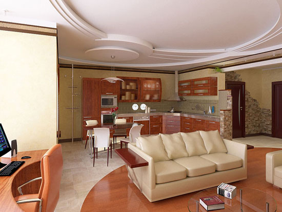 дизайн небольшой кухни гостиной